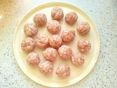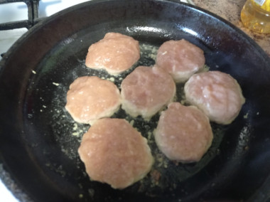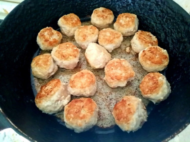 Разогрейте сковороду с растительным маслом и выкладывайте в нее сформированные мокрыми руками круглые шарики из фарша.