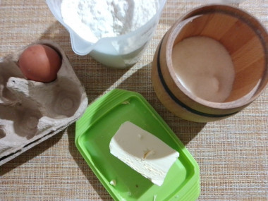 Муку смешайте с разрыхлителем и просейте. Муки у вас может уйти больше или меньше, ориентируйтесь на консистенцию теста.