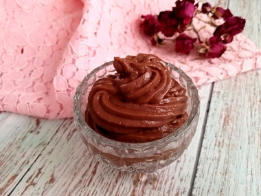 В описании рецепта прочитала, что можно заменить желтки яйцами в меньшем количестве, я так и сделала. Количество крахмала при этом уменьшать не стала, мне нравится как он стабилизирует крем. Сахара взяла чуть больше, т. к. содержание какао в шоколаде было 90%. Основу я заварила горячим молоком и дальше проварила до загустения. А густеет этот крем очень быстро, нужно постоянно его перемешивать венчиком. Для ускорения процесса шоколад добавляла сразу в горячий крем, после каждого кусочка перемешивала. У меня образовалось немного крахмальных комочков, поэтому тёплый крем протерла через сито. Оказалось, что это дело быстрое и совсем не проблемное). После этого добавила сливочное масло. Крем застыл быстро! Сразу после остывания он прекрасно держит форму, даже без длительного охлаждения. Консистенция у него нежнейшая, обволакивающая. На вкус не сильно сладко, зато очень шоколадно!