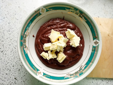 Затем вмешайте в остывший шоколадный крем мягкое сливочное масло.
