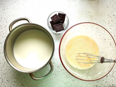 В сотейник влейте молоко. Поставьте на медленный огонь и прогрейте. От молока должен пойти пар, но до кипения не доводите.