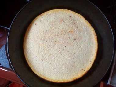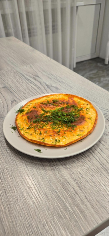 Накройте сковороду крышкой и жарьте омлет на медленном огне около 15 минут. По желанию можете перевернуть омлет на другую сторону, чтобы золотистая румяная корочка получилась с двух сторон.