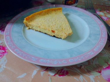 Омлет получился удивительный: сочный, нежный. Режется на порционные куски он хорошо, не разваливается. Вкус у него такой, будто в него добавлен сыр.