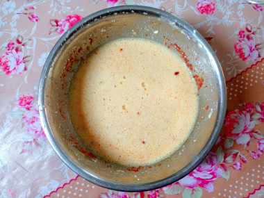 Впервые в жизни я готовила омлет с творогом вместо молока. У меня была упаковка творога – 180 граммов. На это количество я взяла шесть яиц. Творог с яйцами до однородности смешала с помощью миксера. Добавила паприки, черного перца, соли. Только петрушки у меня не было.