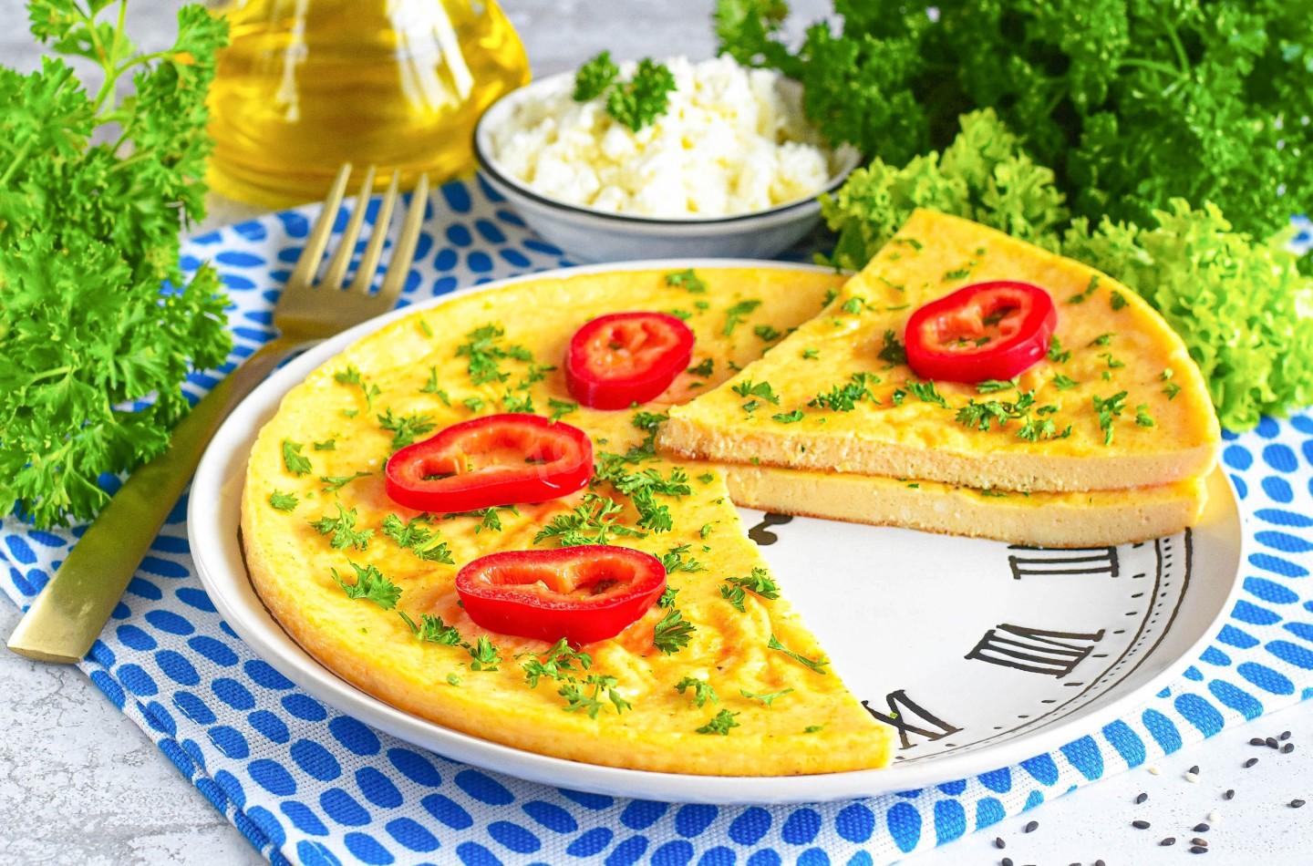 Добавление творога в яичную массу снижает ее калорийность на порцию по сравнению с классическим омлетом, увеличивая при этом объем и питательную ценность.