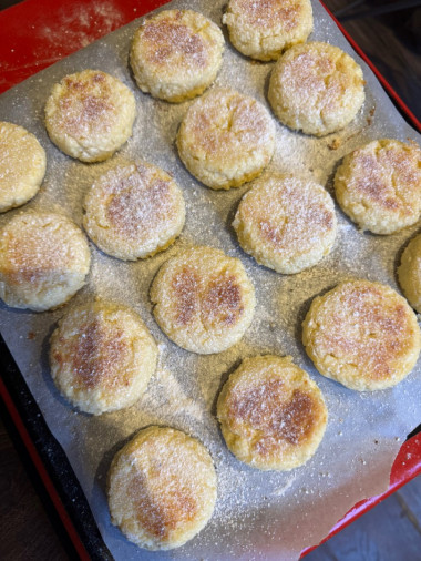 Сырники сформировала просто руками, даже не смачивала и не припыляла мукой. Выпекала на пергаменте, смазанном растительным маслом 15 минут с одной стороны и 10 минут с другой. Сырники прекрасно держат форму, легко переворачиваются.