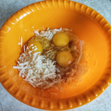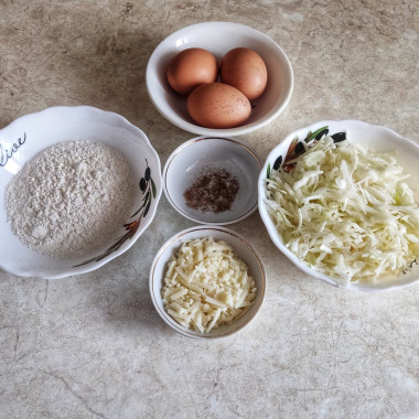 Капусту нашинковала, помяла слегка руками. Сыр натерла на тёрке. Смешала все ингредиенты и выложила на сковороду. Обжарила с одной стороны под крышкой. Не снимая крышку,перевернула запеканку на крышку и с крышки сняла на сковороду. Спасибо автору за такой классный совет.