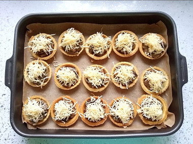 Спасибо за рецепт! Очень вкусно! Вместо тертого твердого сыра использовали ломтики сулугуни и разогревали в аэрогриле. Тарталетки получились с воздушной сырной шапочкой.