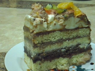 Доброго времени.вопрос-сколько все таки тут слоев бисквита??по описанию после рецепта-их 2....а на вашем фото и фото в комментах кажется намного больше.я в замешательстве.хочу испечь,но боюсь испортить-смущает описание и фото после с большим количеством слоев.и еще -что там за темный слой?(какао в описании не нашла).спасибо