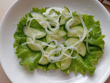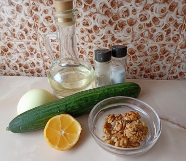 Заинтересовал рецепт салата огурцы и орехи грецкие. Почему бы и не попробовать?))) Лук тонко нарезала, убедившись при этом , что он очень "злой", поэтому ошпарила его кипятком и сразу после этого залила холодной водой ( лук таким образом сохранил аппетитный хруст, но ненужная горечь ушла). Грецкие орехи немного обжарила на сухой сковороде. На блюдо выложила листья салата, на них нарезала свежий огурчик, слой лука, присолила, сбрызнула лимонным соком, сверху опять положила слой огурцов, лук, снова слегка присолила и добавила сок лимона. Ну а сверху- кусочки грецкого ореха. Новое сочетание ингредиентов настолько мне понравилось, что я практически в одиночку съела весь салат))) . Сочно, ярко, ароматно,пикантно! Огурчик и лучок так аппетитно похрустывают , хорошо чувствуется лимонная нотка и в довершение, для полного наслаждения насыщенный ореховый вкус! Беру рецепт в копилочку. Буду удивлять гостей! Спасибо за рецепт, katushafin!