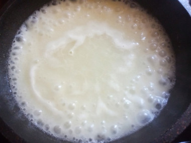 Для соуса растопите на сковороде на небольшом огне сливочное масло. Всыпьте в него муку и быстро перемешайте ее с маслом.