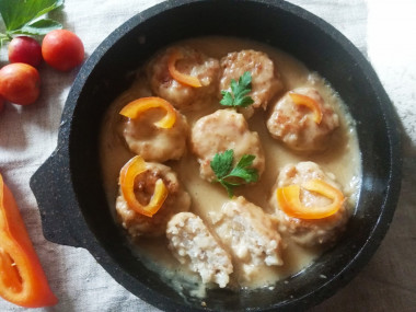 Затем влейте к тефтелям сливочный соус. Он достаточно жидкий, но при дальнейшем тушении загустеет. Накройте сковороду крышкой, огонь сделайте минимальным. Тушите тефтели 20-30 минут, в зависимости от размера.