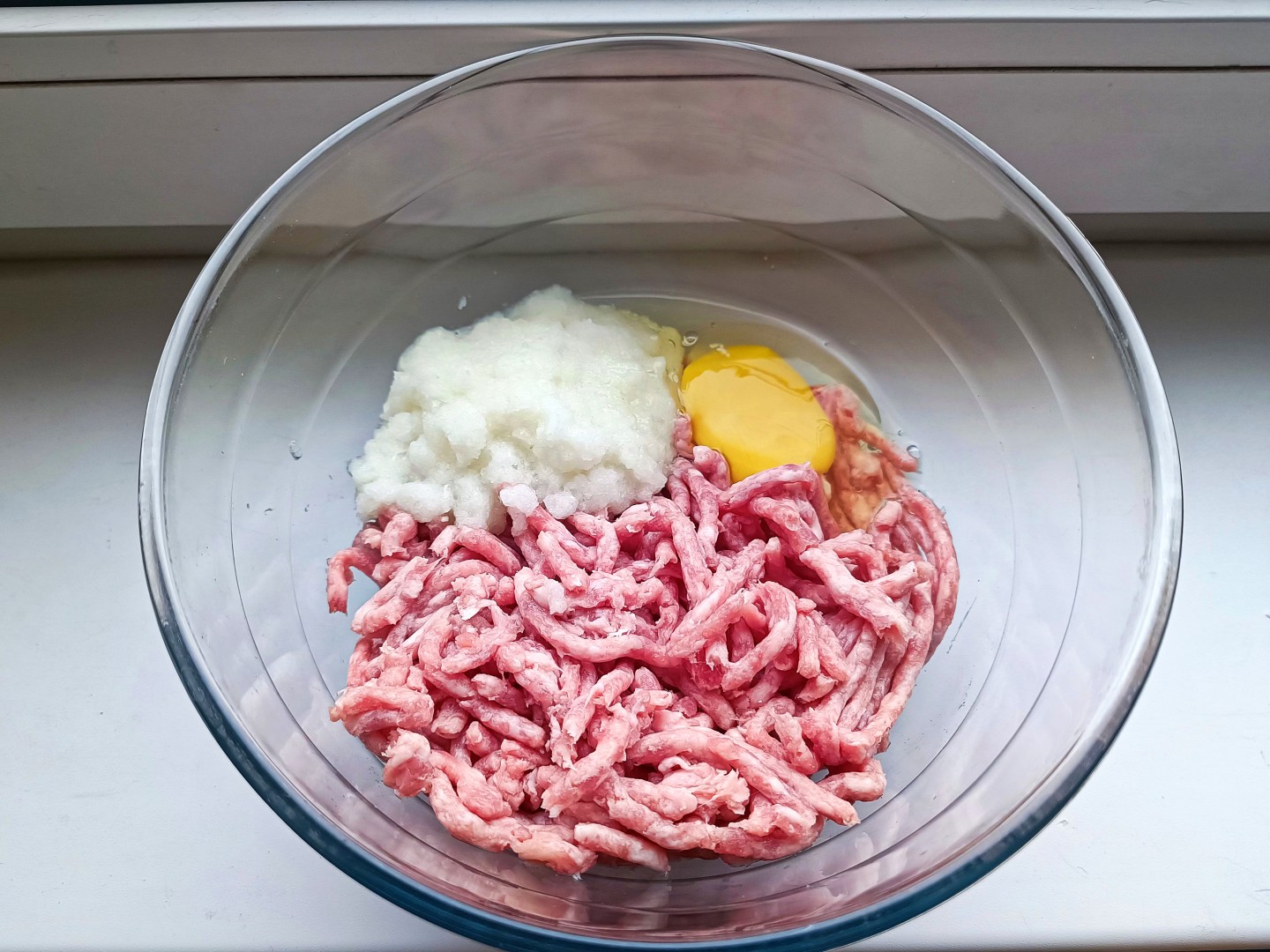 А пока займитесь фаршем. Луковицу очистите и измельчите любым способом — ножом, в блендере или на терке. Я всегда натираю лук, чтобы фарш получился сочнее.