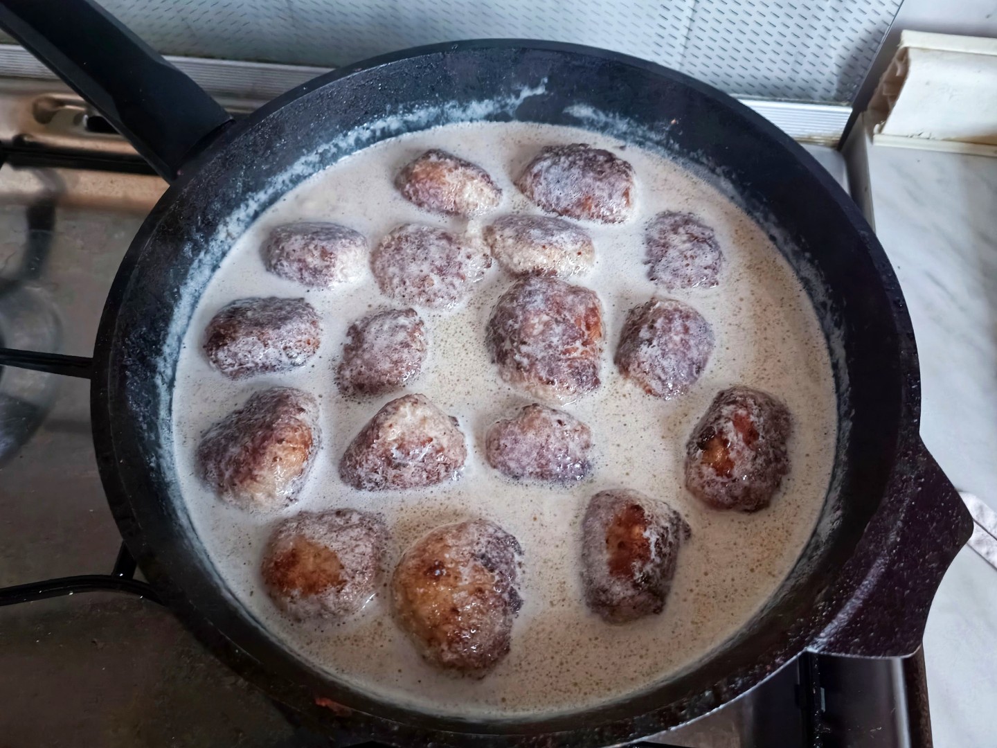 Решила приготовить тефтели по этому рецепту, так как муж обожает именно сливочные соусы. Рецепт показался мне простым и понятным, и я не ошиблась! Единственное, я немного изменила процесс: сначала начала обжаривать тефтели на одной сковороде, а на другой быстро приготовила соус. Он делается буквально за минуты, поэтому как раз к моменту, когда тефтели подрумянились, соус был готов к добавлению.