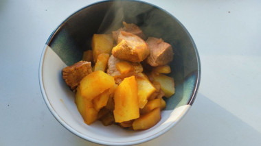 Тушите всё вместе под крышкой до готовности картофеля. Он должен стать мягким. Подавайте в горячем виде. Приятного аппетита!