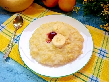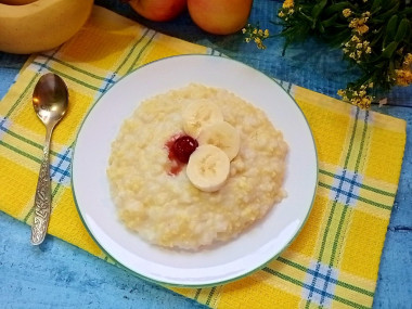 Каша впитает в себя молоко и крупа увеличится в размере. Готовую кашу разложите по тарелкам и подавайте к столу в горячем виде. Дополнительно можно добавить в кашу ягоды. Приятного аппетита!