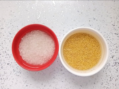 Рис промойте несколько раз в холодной воде. Изюм залейте горячей водой и оставьте постоять минут на 10-15, чтобы он распарился и стал мягкий. Пшено так же залейте горячей водой и оставьте постоять минут на 5. Благодаря этому из пшена уйдёт горечь. Затем слейте воду с риса, пшена и изюма.