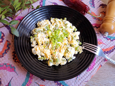 Переложите яйца с зеленым горошком на тарелку и подайте к столу. Приятного аппетита!