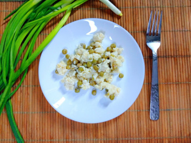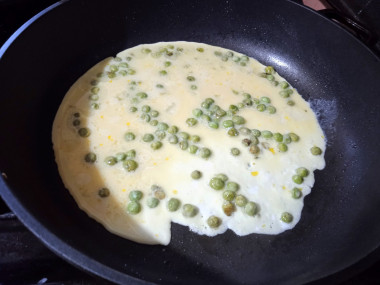 Это просто идеальный вариант завтрака! Буквально за считанные минуту получилось лёгкое, но сытное и питательное блюдо. Горошек отлично дополнил общий вкус омлета.