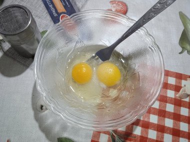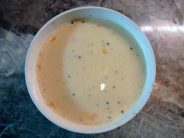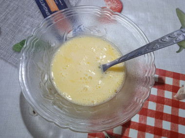 В миску разбейте яйца. Влейте молоко, добавьте соль и молотый перец. Взболтайте смесь венчиком до однородности и до соединения белка с желтком. Молоко можно заменить сливками жирностью 10-20%, получится еще вкуснее.