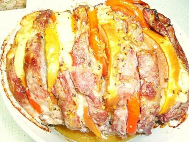 Мясо с айвой в духовке - колоритное, сытное и оригинальное мясное блюдо к праздничному столу! Советую всем приготовить такую мясную гармошку, не пожалеете. Блюдо украсит любой праздничный стол. Очень вкусно, нарядно, празднично!!