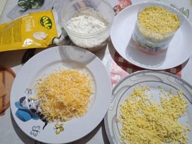 Сверху натрите на мелкой терке равномерно яичные желтки.