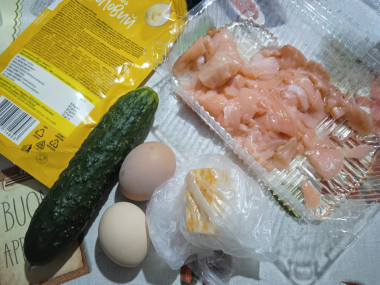 Как сделать салат с красной рыбой, огурцом и сыром? Подготовьте необходимые продукты. Для салата подойдет любая слабосоленая и копченая красная рыба (семга, форель, кета, горбуша). У меня слабосоленая форель.
