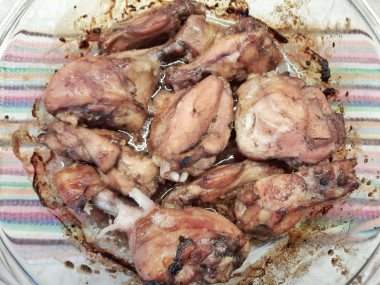 Приготовила по данному рецепту части курицы в медово соевом соусе, оставшиеся от разделки целой тушки. Лишний раз убеждаюсь, что все гениальное просто. Всего несколько ингредиентов в своем сочетании дают потрясающий результат. Куриное мясо быстро становится мягким и сочным в таком маринаде. Мне очень понравилась легкая нотка сладости меда и ненавязчивый аромат соевого соуса в готовом блюде. Я также добавила зубчик чеснока, уж очень я его люблю. Внешний вид запеченной курицы невероятно привлекательный и аппетитный, красивого золотистого цвета. Мои домочадцы очень хвалили данное блюдо Куриные крылышки в медово соевом соусе в духовке!
