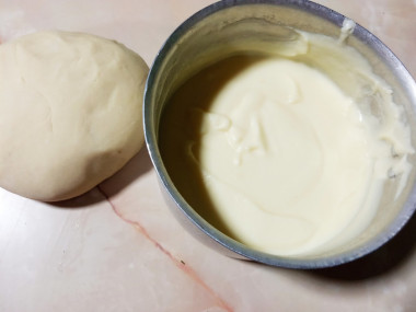 Как сделать торт Минутка со сгущенкой на сковороде? Сначала можно приготовить заварной крем, чтобы он остыл, пока выпекаются коржи. Отмерьте для крема необходимые ингредиенты. Сливочное масло используйте хорошего качества, без заменителей молочного жира. Достаньте его из холодильника заранее, чтобы оно согрелось при комнатной температуре.