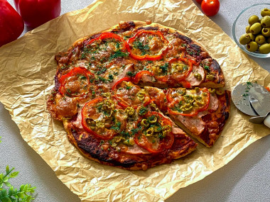 Творожная пицца на творожном тесте с моцареллой и маслинами (на половину 😄). Люблю, когда тесто получается нежным, и держит форму, этот творожный вариант просто идеален! Замесила его быстро, по ощущениям напоминает мягкий пластилин, раскатывается без борьбы, не рвётся. Вместо готового томатного соуса сделала свой вариант: томатная паста + вода, чеснок, зелень и чёрный перец. Получилось ароматно, с лёгкой остринкой! Начинка: куриная колбаса, сладкий перец и много моцареллы (я её обожаю за тягучесть). Лук не добавляла не мой фаворит, а вот маслины... но только на свою половину! Муж морщится при их виде, зато я наслаждалась каждым кусочком с этой солёной ноткой. Выпекалась пицца минут 20 сыр растёкся золотистыми пузырями, тесто снизу подрумянилось, но осталось мягким. Подала горячей, посыпав свежим укропом. Вкус изумительный, а главное сытно. Тесто не "резиновое", а нежно-творожное, слегка сладковатое, и это отлично сочетается с солоноватой начинкой. Рецепт находка! Готовится легко, съедается ещё быстрее. Особенно радует, что тесто можно адаптировать под любую начинку. В следующий раз попробую с курицей и грибами. Рекомендую!