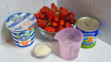 Как сделать клубничное желе? Подготовьте ингредиенты. Ягоды вымойте, обсушите. Сметану берите жирностью 30 %. С жирностью менее 20 % не взобьется.