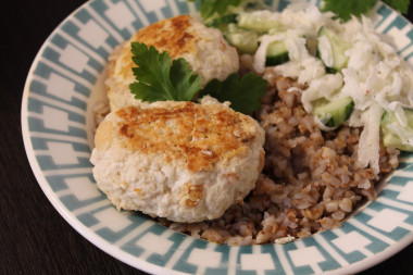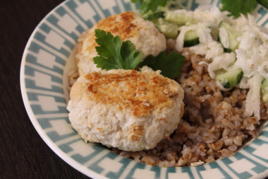 Мякиш белого хлеба нужно размочить в молоке. Пока хлеб приобретет нужную консистенцию, можно нарезать лук. В фарш для котлет я всегда добавляю яйцо. Но, как назло, в моем холодильнике в этот раз не оказалось ни одного яйца. Поэтому чтобы фарш получился достаточно сочным, в него надо добавить много лука. Этому меня научила бабушка, которая много лет прожила в Средней Азии и знает, как приготовить самые вкусные и сочные манты. Чистим одну большую картофелину и натираем на крупной терке. Размокший хлеб добавляем в фарш, туда же отправляем мелкопорубленную луковицу и тертый картофель. Все перемешиваем. Далее солим и из имеющихся специй выбираем те, которые более всего подходят к птице: перец, тимьян или даже карри. Лепим небольшие котлеты, обваливаем их с двух сторон в муке и на среднем огне обжариваем с двух сторон. По мнению моих домочадцев, лучшим гарниром к таким котлетам является рассыпчатый рис или тушеные овощи. Еда получается вкусной и не очень тяжелой.