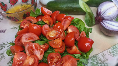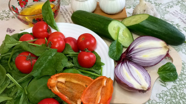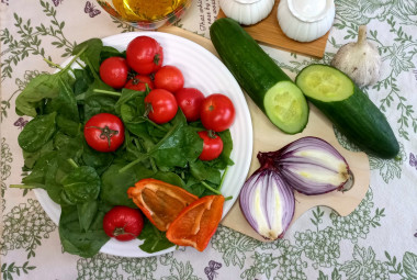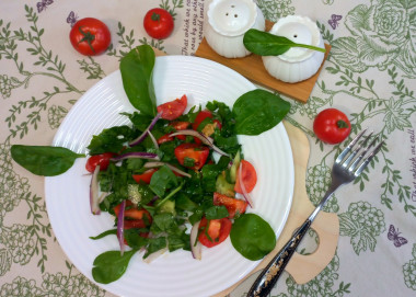 Салат со шпинатом, с помидорами и огурцом готов, подавайте!
