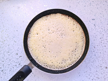 Жарьте блин до румяности на одной стороне, затем переверните на другую.