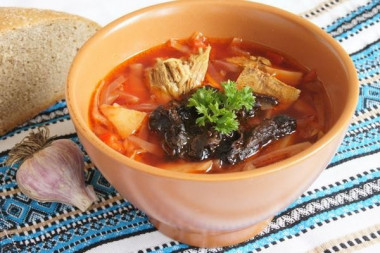 Простой и оригинальный борщ с черносливом на каждый день и праздники. Изюминка здесь, конечно же, нотка чернослива. Она дает очень насыщенный вкус, не совсем обычный для многих. Я готовила не с курицей, а с говядиной, очень понравилось!