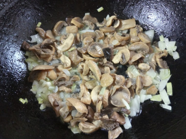 Следом выложите грибы.Жарьте, помешивая 5-7 минут.