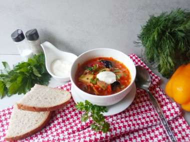 Я тоже готовлю такой борщ, мне нравится, чернослив придает ему сладость и очень красиво смотрится в тарелке, отличный рецепт!