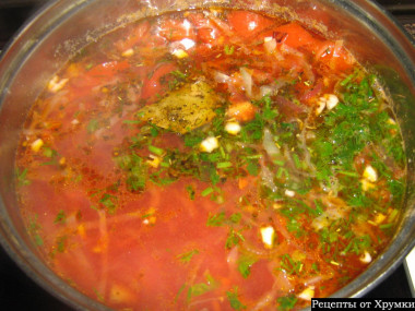Накройте кастрюлю крышкой и дайте борщу настояться около 15 минут. Приятного аппетита!