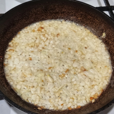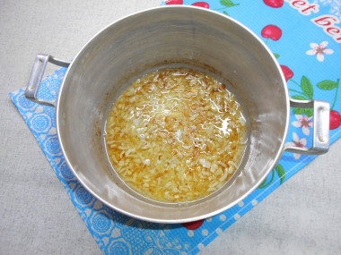 Затем сделайте меньше огонь и томите лук не спеша еще 4-5 минут. После томления лук начнет слегка поджариваться.