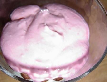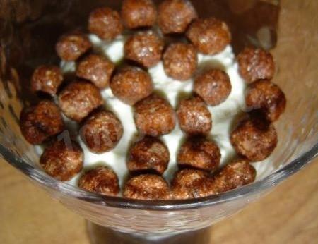 Поверх шариков кладем творожную массу с малиной, после снова шарики и творожный слой.