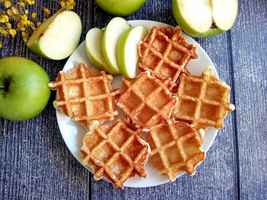 Вафли получились румяными и очень ароматными! Яблоко хорошо чувствуется, даже мякиш слегка волокнистый. Вафли у меня получились мягкими, не хрустящими из-за наличия яблока. Они вкусные и сочные! Рекомендую!