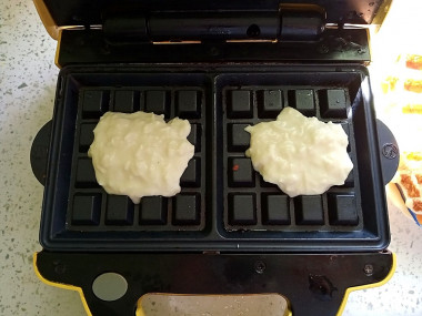 Нам нравятся домашние вафли из рисовой муки, захотелось попробовать новый вариант. Для этого воспользовалась рецептом ПП вафель для вафельницы.