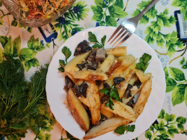Отличный сытный, ароматный и вкусный ужин. Картошка жареная с сушеными грибами на сковороде не требует особых кулинарных навыков. Она получается у всех. Лук и чеснок придают блюду особый аромат. Подавайте его с кетчупом или любыми другими соусами.