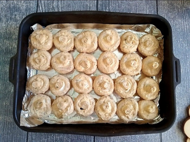 Для запекания подойдет металлическая форма. Застелите форму фольгой и выложите все грибочки шляпкой вниз. Полейте оставшимся соусом. Поставьте форму в духовку, предварительно разогретую до 180 градусов, на 30-40 минут. Ориентируйтесь по совей духовке.