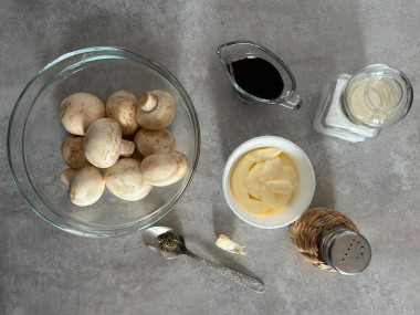 Как запечь шампиньоны целиком в соевом соусе в духовке? Подготовьте для этого необходимые ингредиенты. Свежие шампиньоны берите среднего размера, но учитывайте, что при запекании они немного уменьшатся.