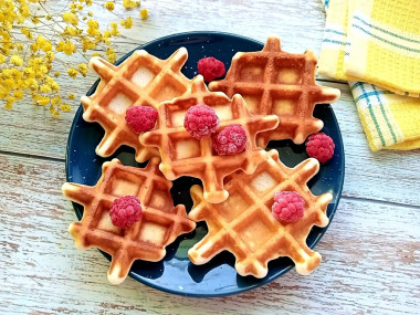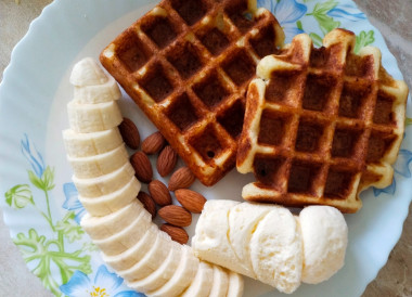 Готовые венские творожные вафли переложите на тарелку и подайте к столу в теплом или охлажденном виде. Приятного аппетита!