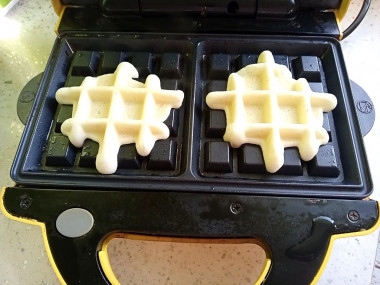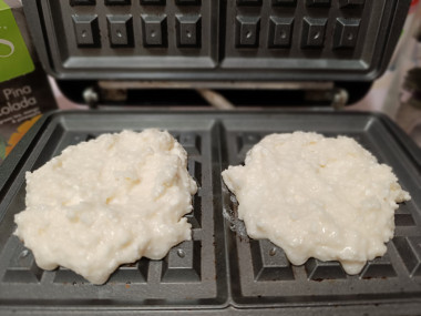 Важно! Учитывайте, что все вафельницы разные. Возможно, пластины вашего прибора нужно будет слегка смазать растительным маслом с высокой температурой дымления при выпекании первого изделия, во избежание его прилипания.