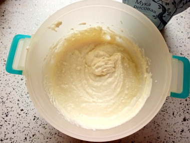 Всыпьте просеянную с разрыхлителем рисовую муку.