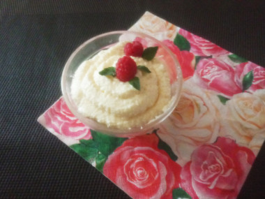 После охлаждения творожный крем без сливок, сыра и сметаны становится стабильным и хорошо держит форму, поэтому он отлично подходит для украшения тортов, капкейков или пирожных.