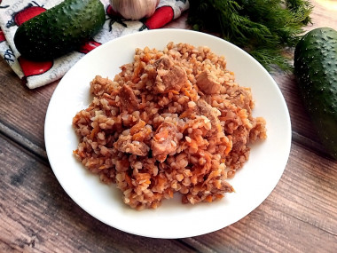 Это блюдо похоже на гречку с говядиной по-купечески, готовлю её в казане, но можно это делать на сковороде, в мультиварке или в духовке.